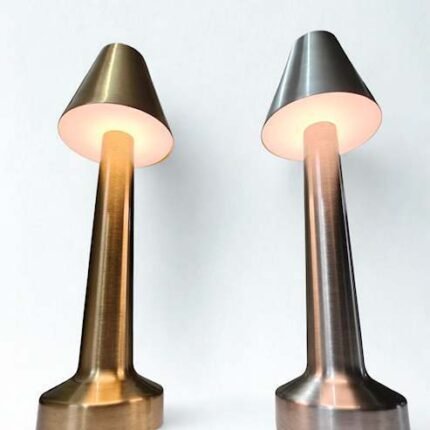 Sturdy metal construction for added durability and modern appeal. 2.Conical lampshade delivers even, directed light for studying, dining, or ambiance. 3. Sleek, minimalist design suitable for contemporary, modern, and classic décor. 4.Available in elegant golden and silver finishes to match different tastes or room themes. 5.Compact size, ideal for work desks, dining tables, or decorative corners.