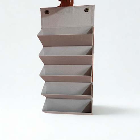 Organize and safeguard your eyewear collection with this stylish hexagonal foldable goggle box. Made with durable faux leather on the exterior and a soft, protective lining inside, the box expands into multiple compartments for efficient storage and collapses to a compact shape for convenient portability. The magnetic snap closure ensures secure storage, while the unique geometric shape adds a fashionable touch to your dressing table, office, or travel kit.