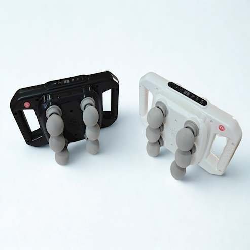 Six Massage Nodes: Offers deep, even pressure to relieve muscle stiffness and body aches.2.Ergonomic Dual Handles: Ensures a comfortable, non-slip grip for easy control and precise targeting.3. Soft-Touch Massage Heads: Gentle on the skin while effectively relaxing sore muscles.4.Strong & Stable Build: Made from durable ABS plastic for long-term, daily use.5. Ventilation Design: Prevents overheating during extended sessions.
